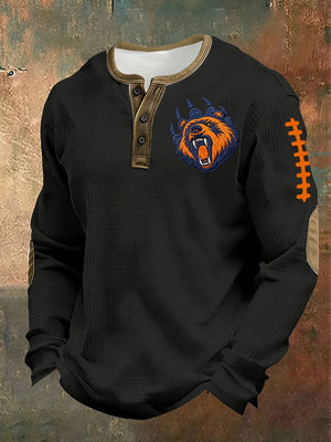 Men's Football Waffle-Knit Fabric Henley Shirt