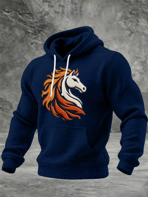 Men's Printed Checkered Fabric Hooded Sweatshirt