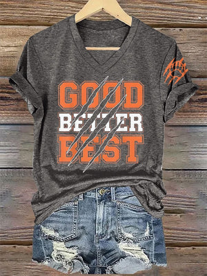 V-Neck Retro Good Better Best Print T-Shirt