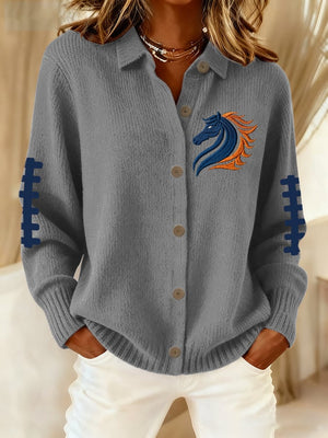 Women's rugby print casual collared knit top