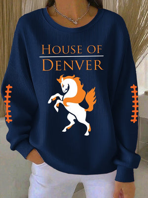 Women's Rugby Print Knit Crew Neck Long Sleeve Top