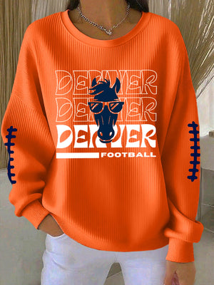 Women's Rugby Print Knit Crew Neck Long Sleeve Top