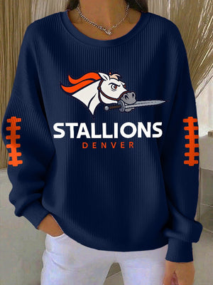 Women's Rugby Print Knit Crew Neck Long-Sleeved Top